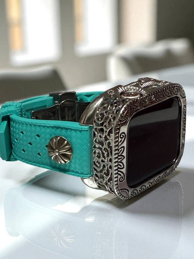 重厚感あふれる彫刻調デザインのメタルカバーと、耐久性・快適性に優れたZEEPフッ素ラバーバンドを組み合わせたApple Watch用カスタムセットです。