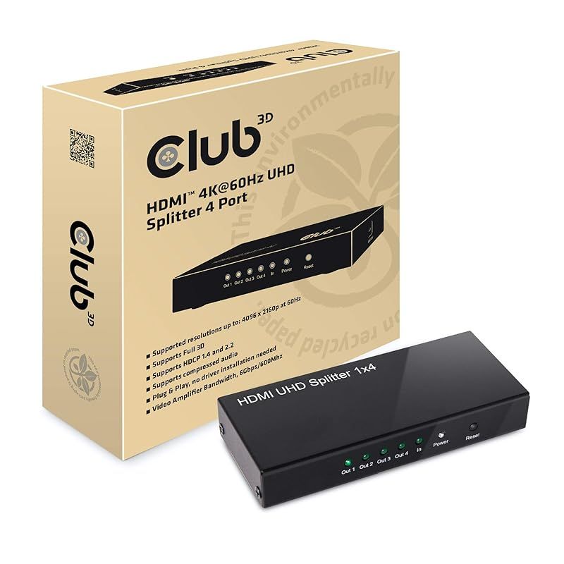 Club 3 D SenseVision HDMI 2 0 4 K 60 Hz UHD 1入力4出力 分配器 スプリッター Splitter CSV 1380 1