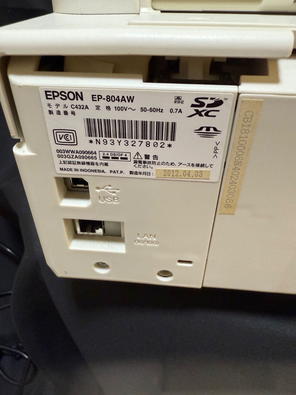 EPSON EP-804 AW インクジェット プリンター ホワイト 黄ばみ有り らくらく 便