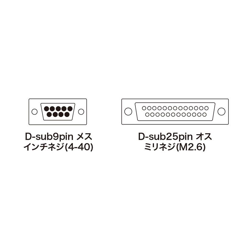 D-sub9pin - D-sub25pin RS-232Cケーブル。モデム・TA用・10m。