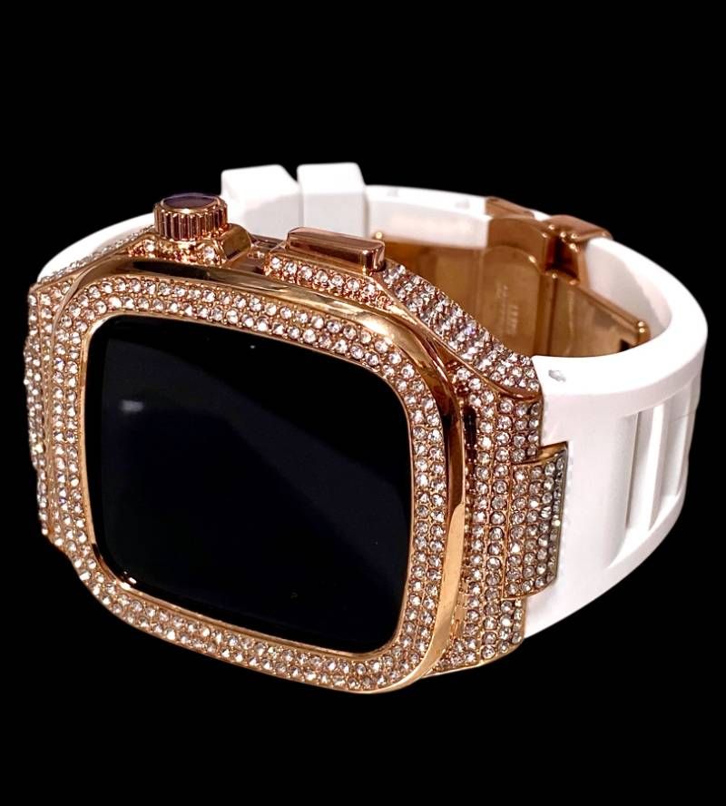 アップルウォッチケース 互換性カスタム カバー 保護 ギフト 42 44 45 46 キラキラ ベルト レザー バンド series 4 5 6 7 8 9 10 11 se 1 2 3 ローズ1