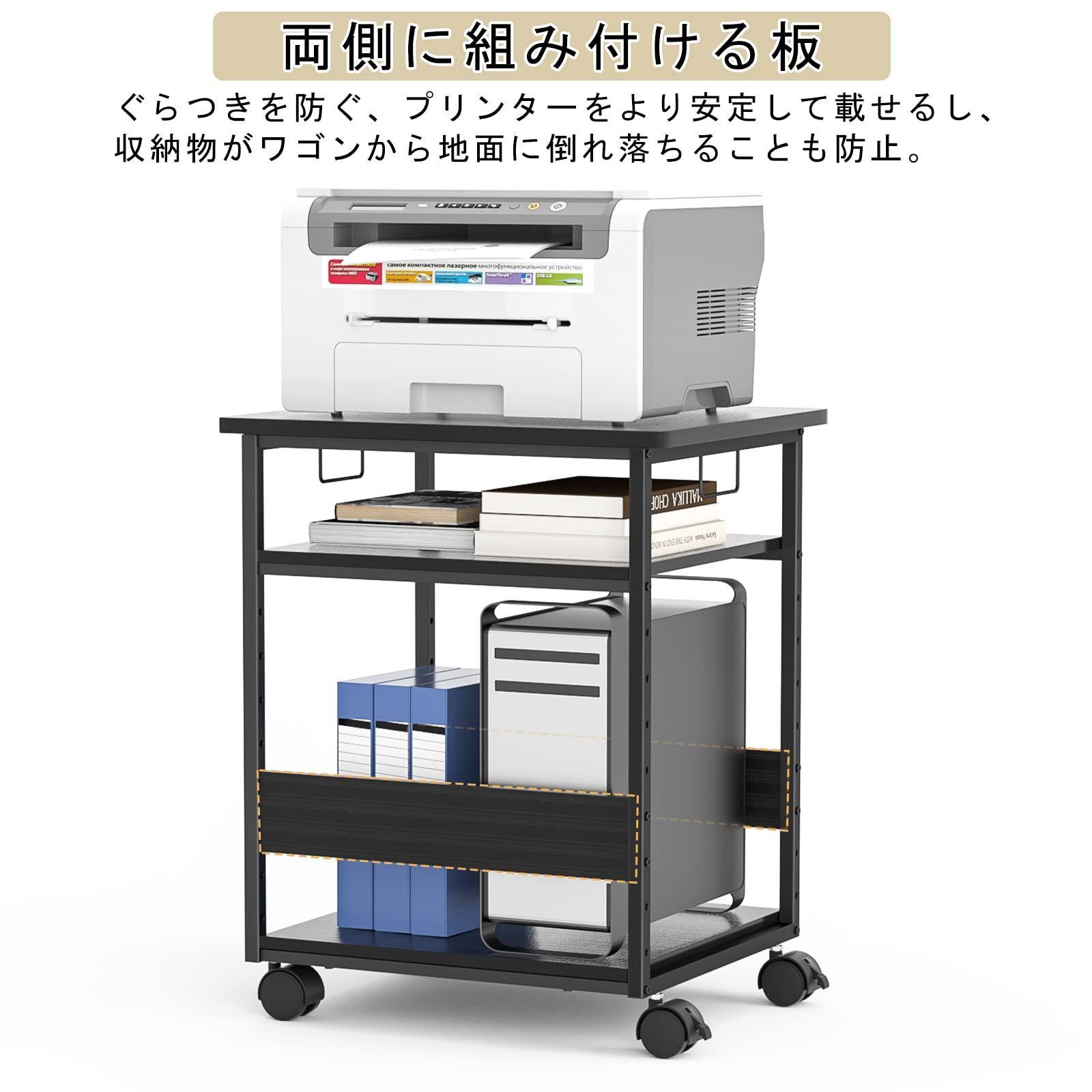 MIYOKI プリンター台 プリンタラック キャスター付き 幅60 奥行50cm 高さ70cm 総耐荷重90kg A3 A4対応 コピー機台 サイド デスク ワゴン デスク下 収納棚 事務用品収納 物置台 中棚9段階調節可能 組立簡単 ブラック