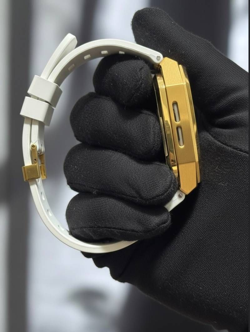 ゴールドホワイト 組み立て 別注ラバー アップルウォッチケース カスタム カバー 保護 44 mm 45 46 アップルウォッチカスタム series 1 2 3 4 5 6 7 8 9 10 11 SE バンド ベルト