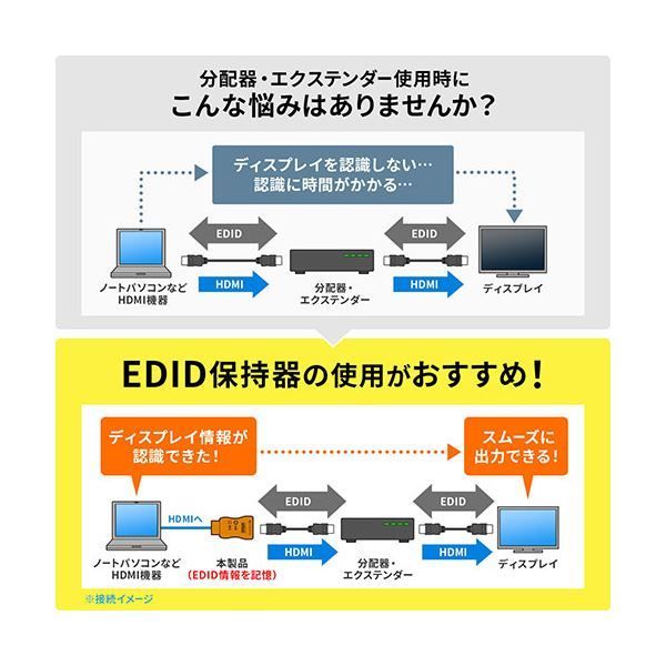 EDID情報を認識させることでスムーズな映像出力を可能にします。(全ての環境で動作を保証するものではありません)