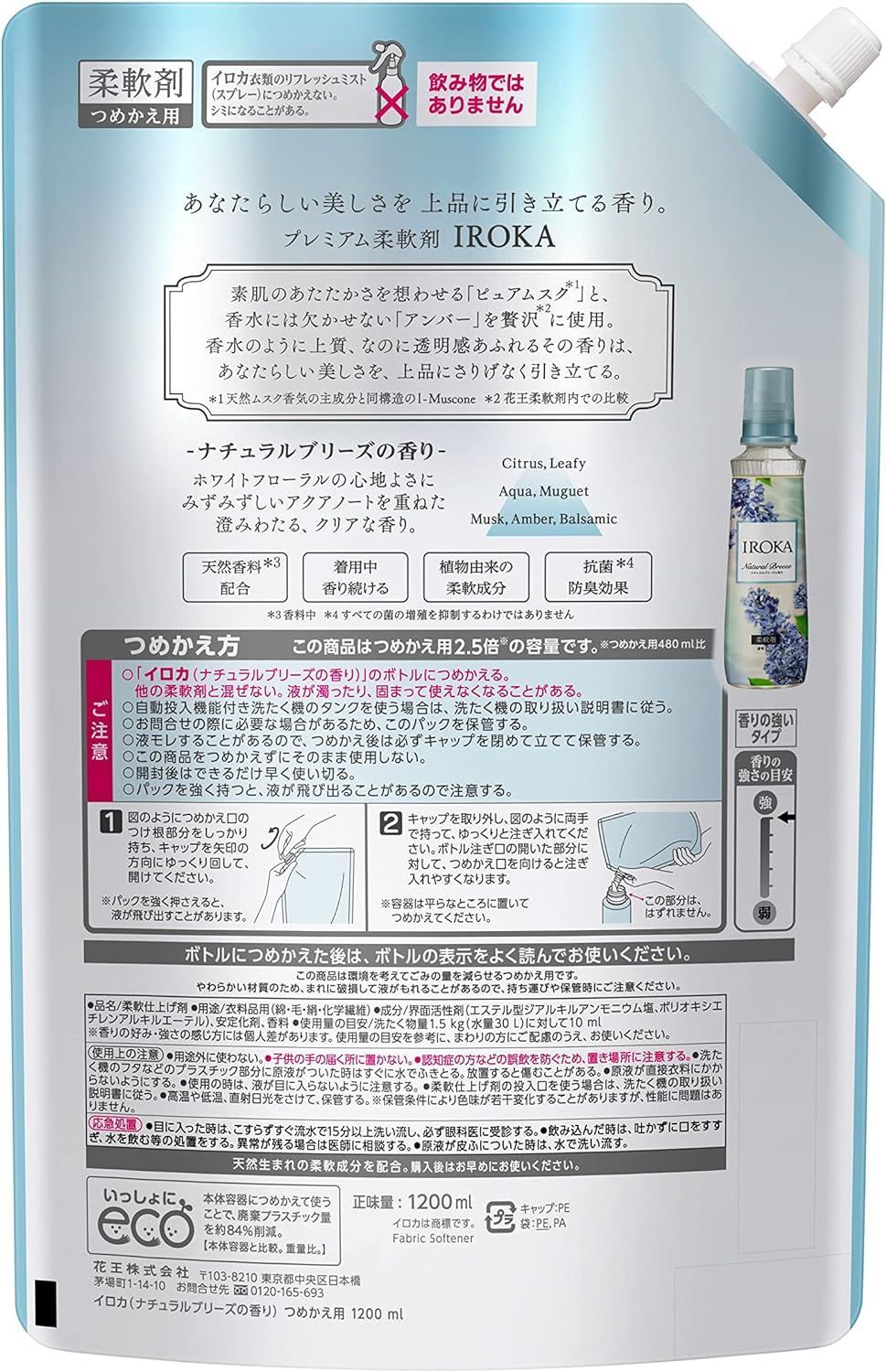 イロカ 柔軟剤 詰め替え ナチュラルブリーズ 香水 上質 透明感 あふれる香り 洗濯 洋服 自然体 贅沢 抗菌 防臭 ニオイ 汗 大容量 特大 2 5倍 1200 ml