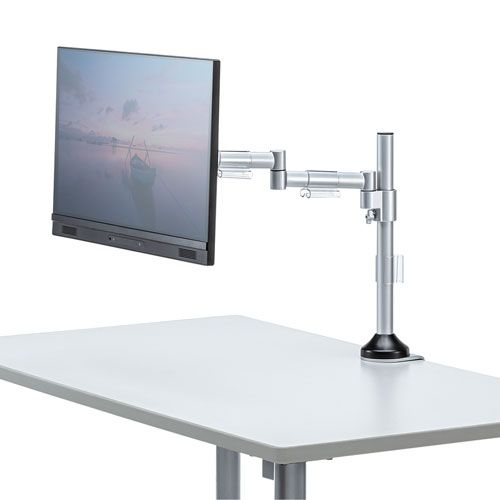 1面モニタ搭載可能。水平多関節モニタアーム。天板固定可能。