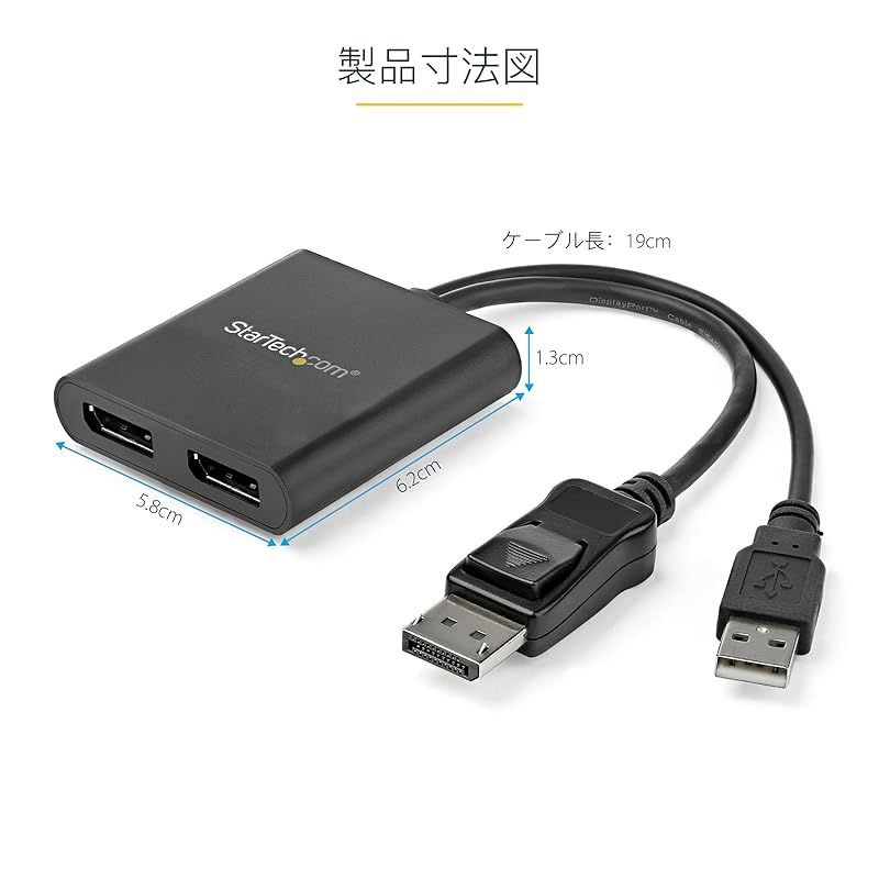 StarTech.com DisplayPort - 2 x マルチモニタースプリッタ 2ポートMSTハブ DP 1.2