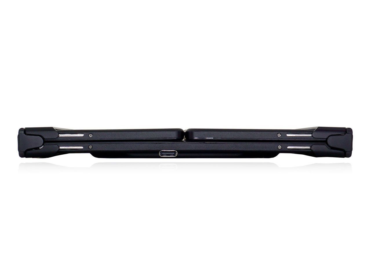 3つ折り構造で、2つ折り型のようにスペースキーが2つに分かれたりキーサイズが極端に崩れたりしない。キースイッチタイプはパンタグラフ。