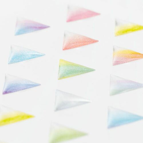 レジン(樹脂)の透明感と立体感を生かしたシールです。幅広く使いやすいモチーフとアクセサリーのようなデザインが魅力です。手紙やカード、ノートの表紙などを可愛くデコレーションできます。水彩色鉛筆のグラデーションが綺麗な三角のシールです。【検索ハッシュタグ】#ミドリ#デザインフィル#シール#レジン#レジンシール#樹脂シール#三角#グラデション