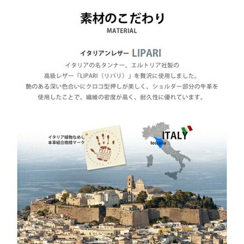 イタリアの名タンナー、エルトリア社製の高級レザー「LIPARI(リパリ)」を贅沢に使用しました。