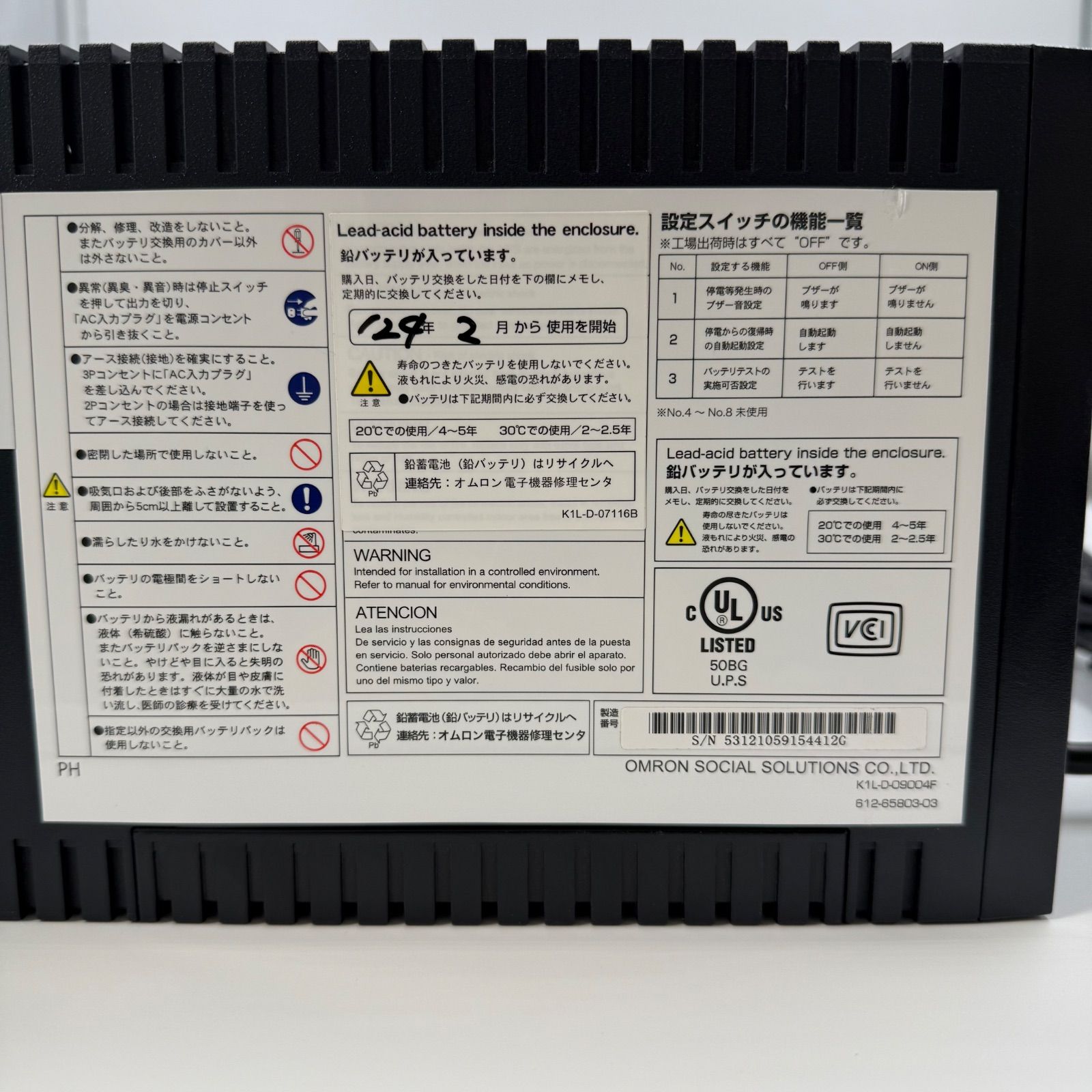 良好バッテリー付き オムロン OMRON UPS BY 50 S 無停電電源装置 500 VA 300 W 常時商用給電 正弦波出力 停電対策