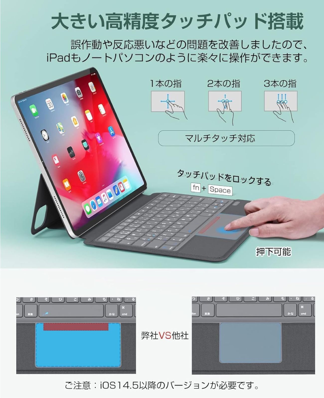 ★★【大きい高精度タッチパッド搭載】 ipad pro 11インチキーボード付きケースの大型で押下可能なトラックパッドは誤作動や反応悪いなどの問題を改善しましたので、高精度で、iPadもノートパソコンのように楽々に操作ができます。在宅勤務やオンライン授業などオフィスでも自室でもiPadの活躍の幅が広がります。タッチパッドは必要ない時、ロックされることができます。ご注意:お使いの端末はiOS14.5以降のバージョンにアップデートしていない場合はタッチパッド機能が利用できません。
