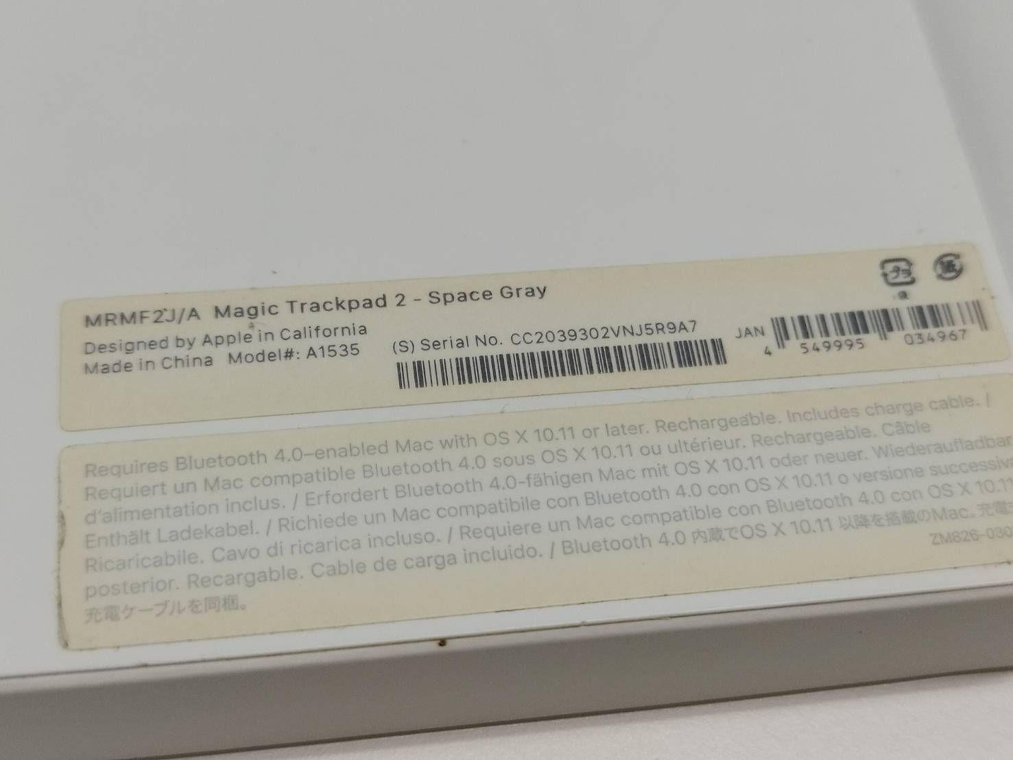 Apple Magic Trackpad 2 A 1535 マジックトラックパッド スペースグレー MRMF J