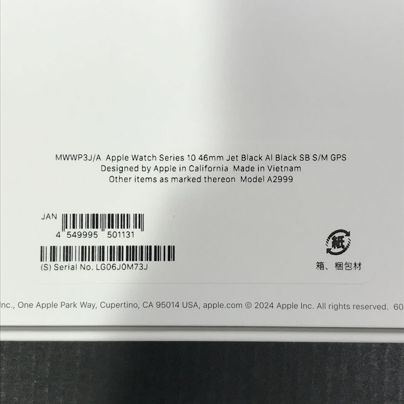 城東70-001 Apple Watch アップルウォッチ Series 10 GPSモデル 46 mm ジェットブラック アルミニウムケース ブラックスポーツバンド S M