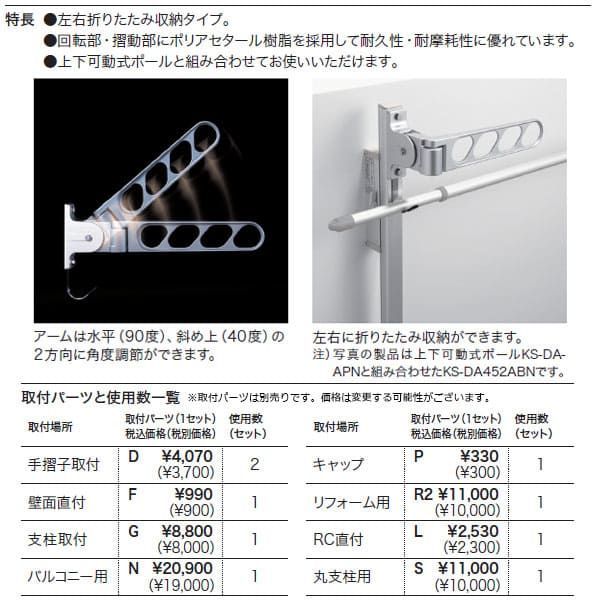 KS SV Nasta キョーワナスタ 屋外物干 折りたたみ収納タイプ L 700 mm シルバー 2本入り