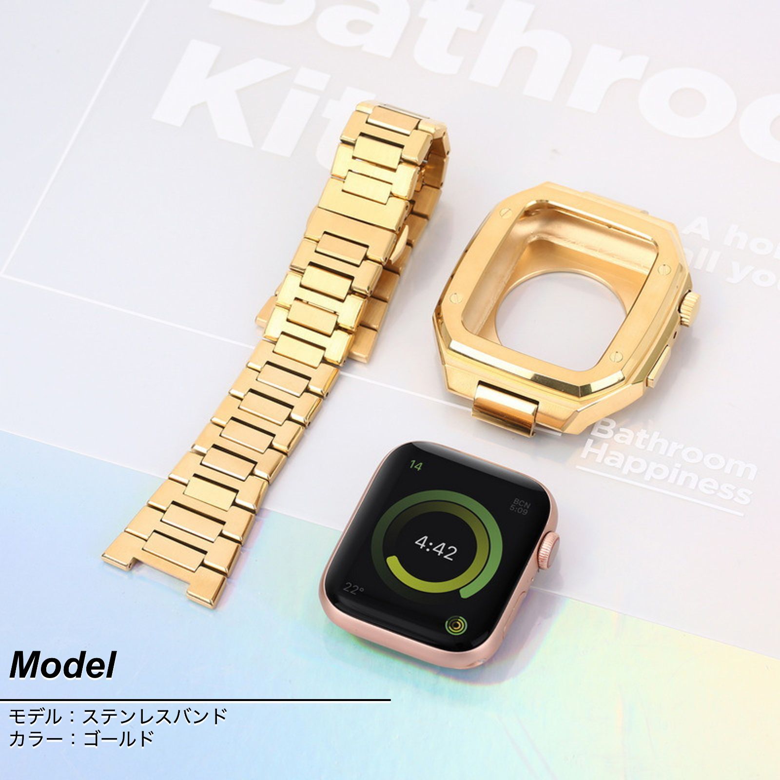 バンド アップルウォッチ カバー ベルト ケース 一体型 ステンレス セット メンズ 高級 おしゃれ フル