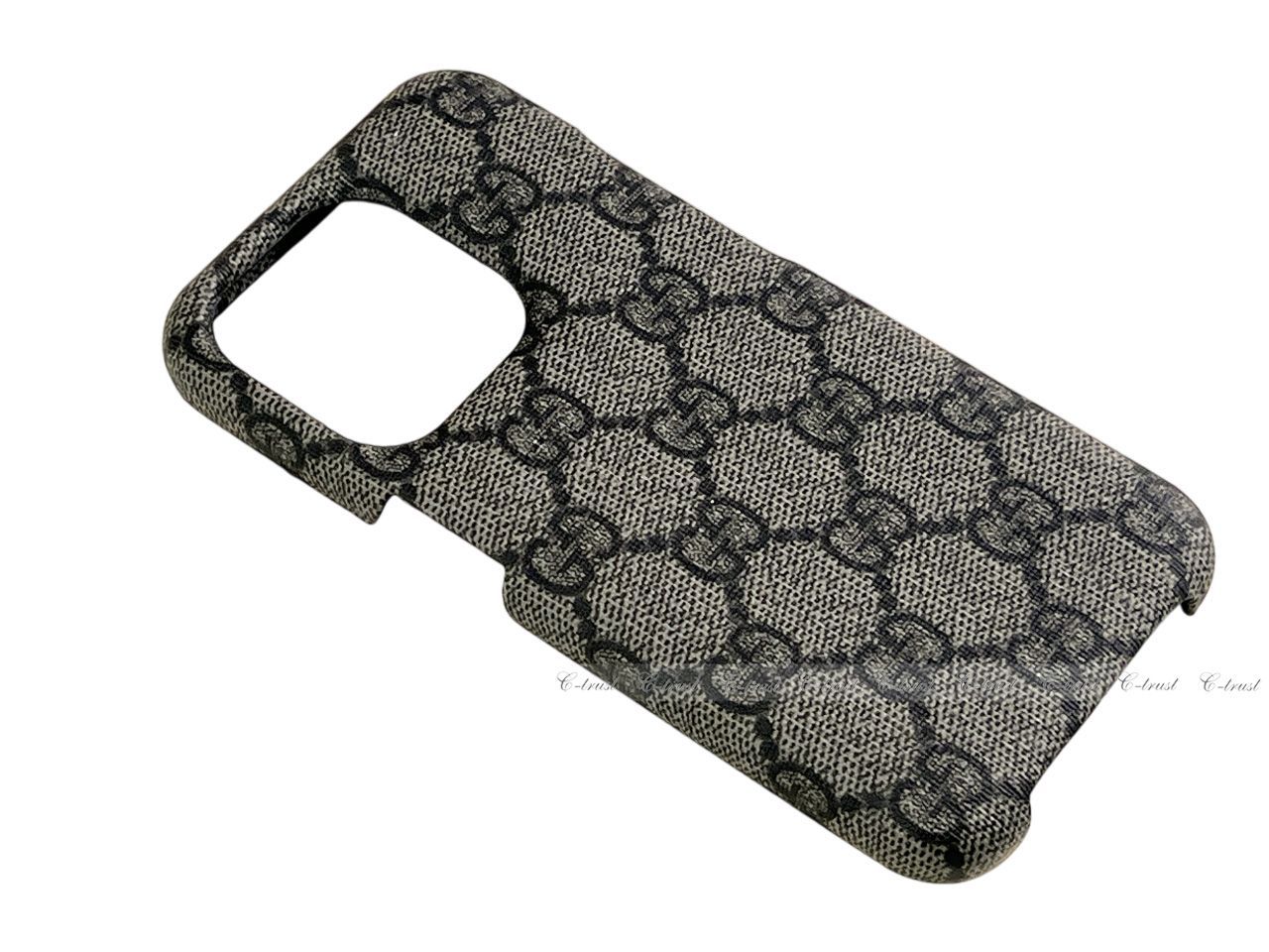 GUCCI グッチ iPhone 15 Pro ケース スマホ GG スプリーム キャンバス ロゴ イタリア製 8713 ネイビー&グレー L 814
