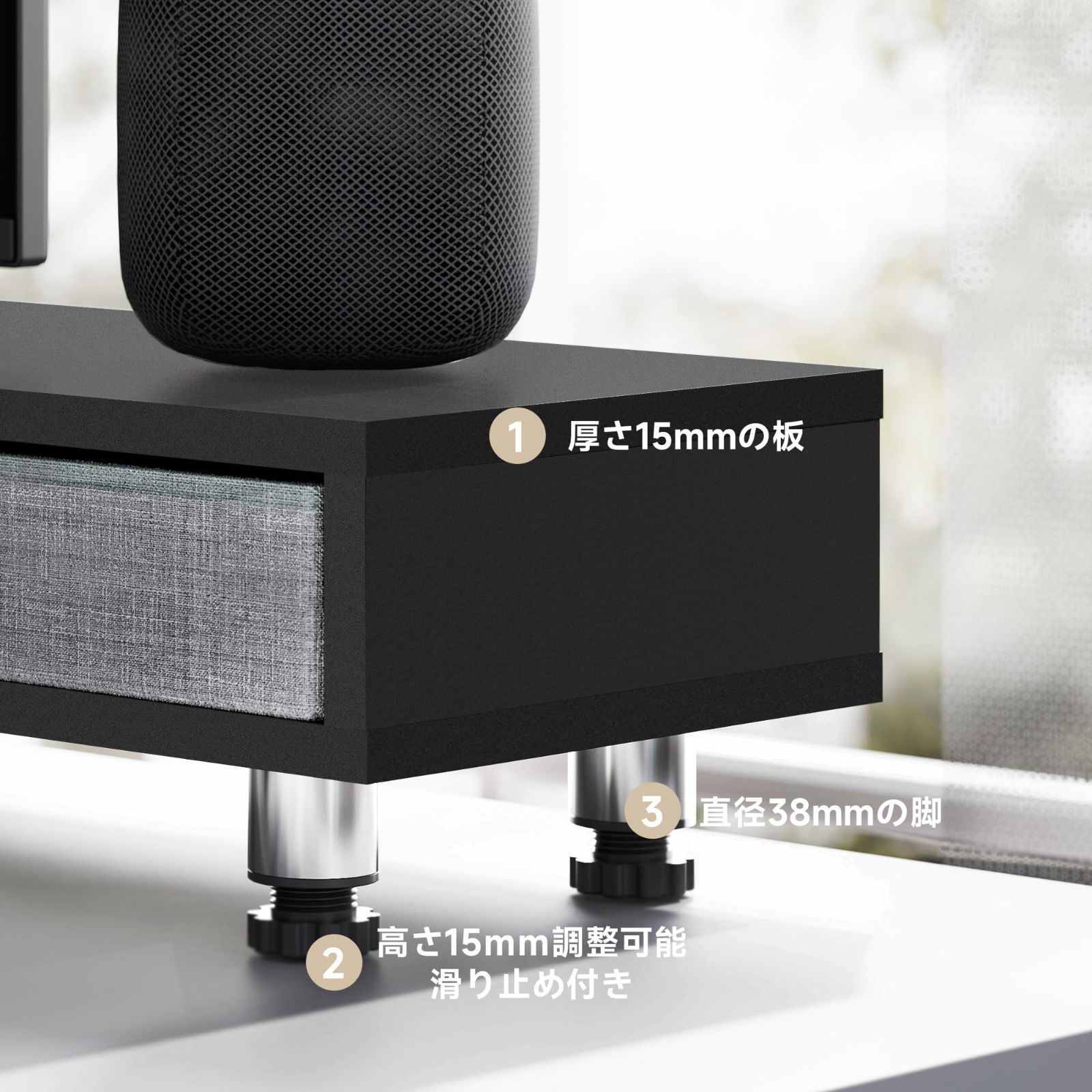 収納 卓上 整理整頓 パソコンラック pcモニター台 机上台 モニタースタンド 高さ調整 引き出し付き 木目黒 木製天板 2段 108 cm横幅 机上ラック パソコン台 モニター台 Fenge