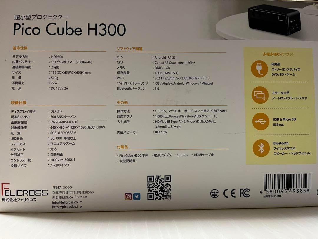 Felicross フェリクロス 超小型プロジェクター PicoCube H 300