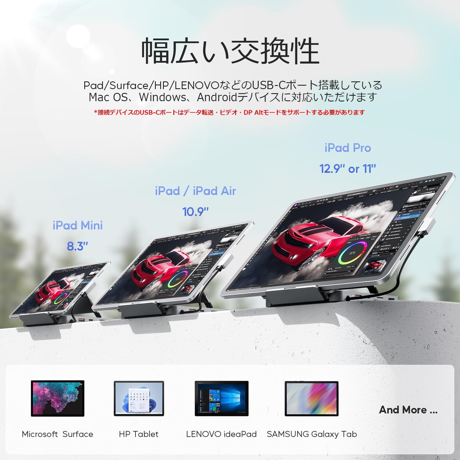 タブレットスタンド HDMI 4 K 60 Hz 折り畳み式 SSDスロット付 SSD含まれない iPad USB-C 3.2 USB-A 10 Gbps ハブ ドッキングステーション 2.0