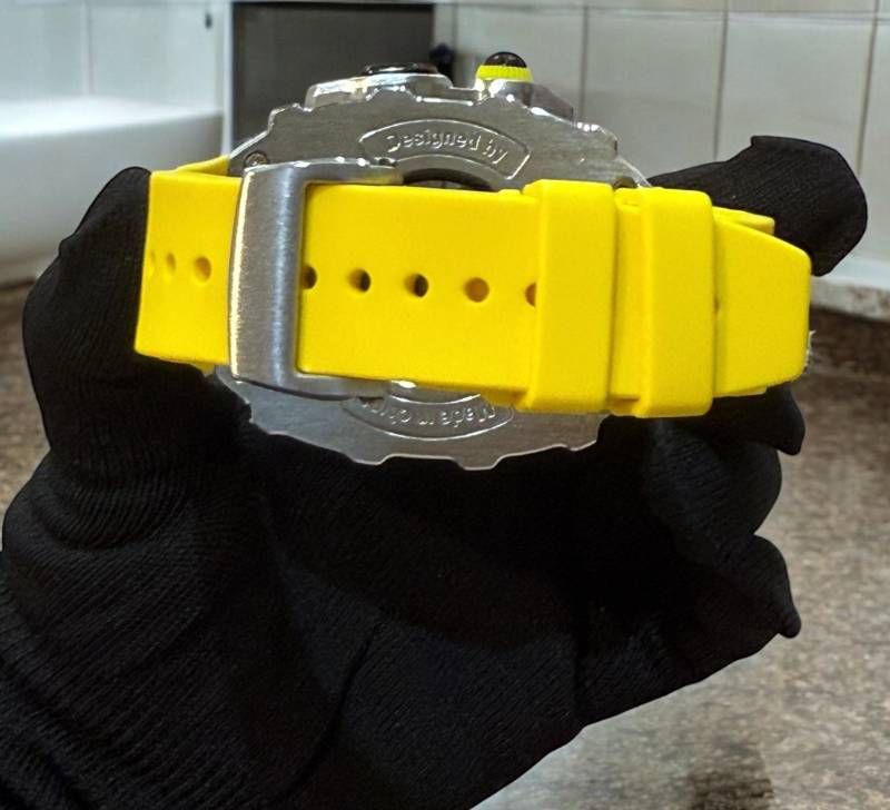 シルバーイエロー 別注強化型シルバーバックルモデル AppleWatc用 カスタム カバーケース 保護 46 アップルウォッチ series 10 11 ラバーバンド ベルト