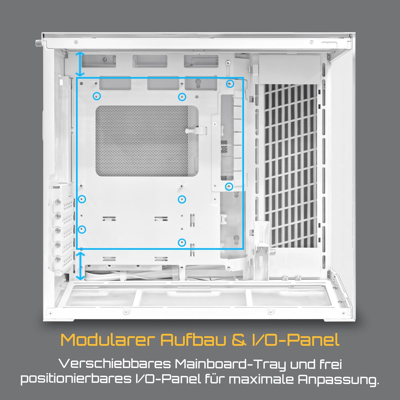 ラジエーターの柔軟性を確保するためにM-ATXマザーボードの取り付け位置を垂直方向に調整可能