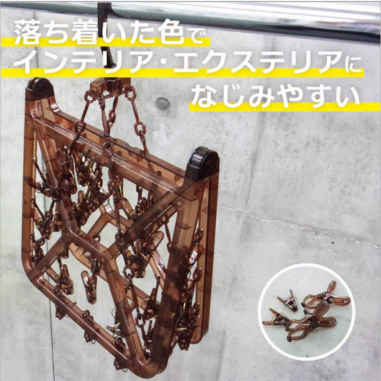 オーエ 洗濯 物干し ハンガー 縦60.5×横30×高さ35.5cm ブラウン ピンチ 32個付き ストロング 角ハンガー 紫外線に強い 割れにくい ポリカーボネート 使用 83541