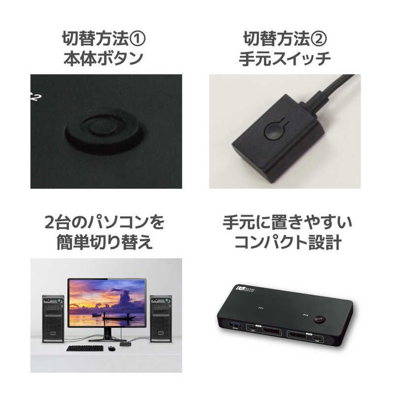 ●8Kディスプレイ、USBキーボード/マウスを同時に切替可能なパソコン切替器(PC2台用)