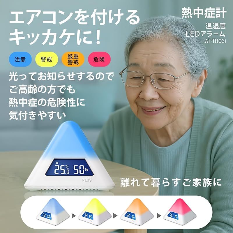 プラス 温度湿度計 猛暑 熱中症対策 温湿度LEDアラーム 色でお知らせ 通知 4段階警告 夏 冬切替 AT-TH 03 538162