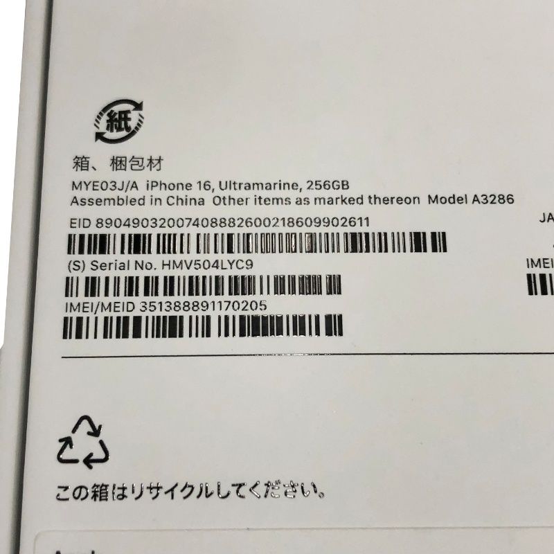 SIMフリー Apple iPhone 16 256 GB MYE 03 J A docomo 判定 ウルトラマリン スマートフォン スマホ