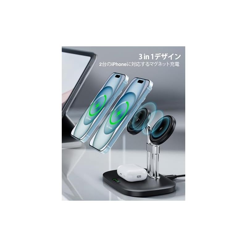 ワイヤレス充電器 iPhoneに対応、SwanScout 706M、デュアル mag-safe 充電器 iPhone 16/15/14/13/12シリーズ対応、AirPods 4/Pro 2/Pro/3対応