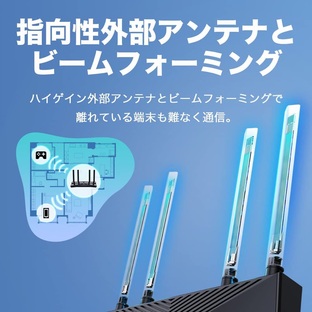 [特徴] コストパフォーマンスに優れたAX3000規格のWi-Fi 6対応無線LANルーター[Wi-Fi規格値] 2402Mbps +