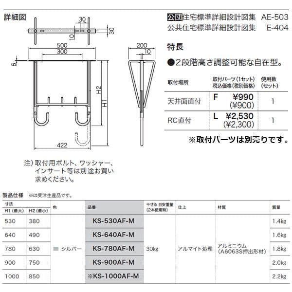 KS 1000 AF M Nasta キョーワナスタ 屋外物干 天井取付用 自在タイプ 最大1000 mm 最小850 シルバー