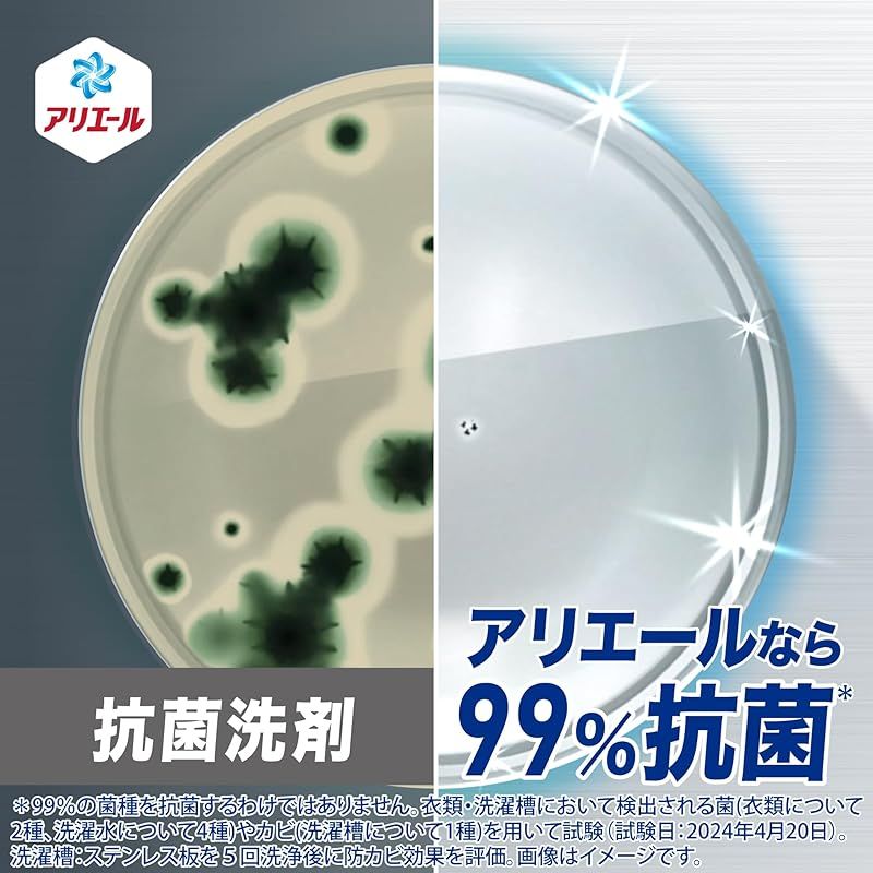 10%濃縮!同じ洗濯洗剤量で今までより+5枚洗える!*2023年アリエール超抗菌プレミアムシリーズ比。同じ洗濯水量設定の場合。