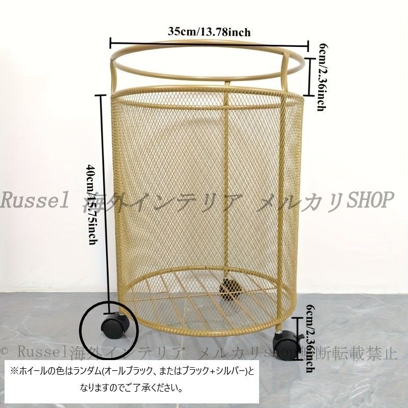 ランドリー バスケット ラグジュアリー 円形 メッシュ キャスター 付き おしゃれ かわいい インテリア エレガント 洗濯 カゴ コンパクト スリム 黒 ゴールド