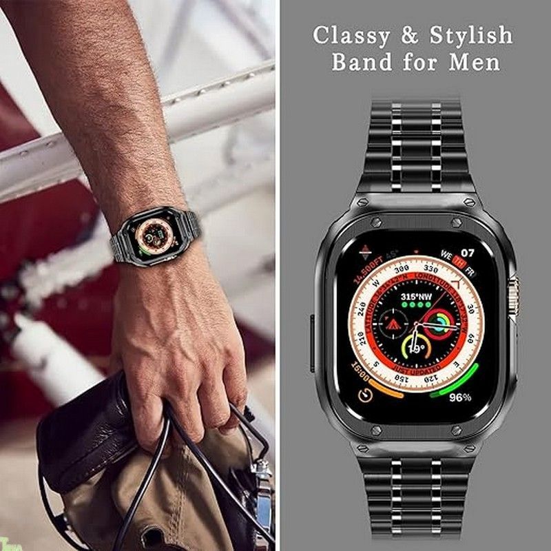 MioHHR ステンレススティール製バンド ケース互換性 Apple Watch Bands 49 mm 金属製保護バンパーカバー付き頑丈なストラップ iWatch Ultra 3 2 1 男性用 ブラック a
