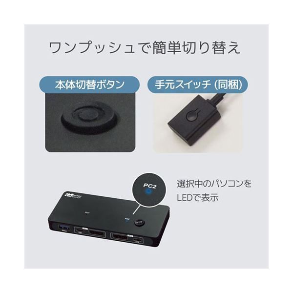 切替方式:本体切替ボタン、手元スイッチ※ホットキーの切り替えには対応していません。