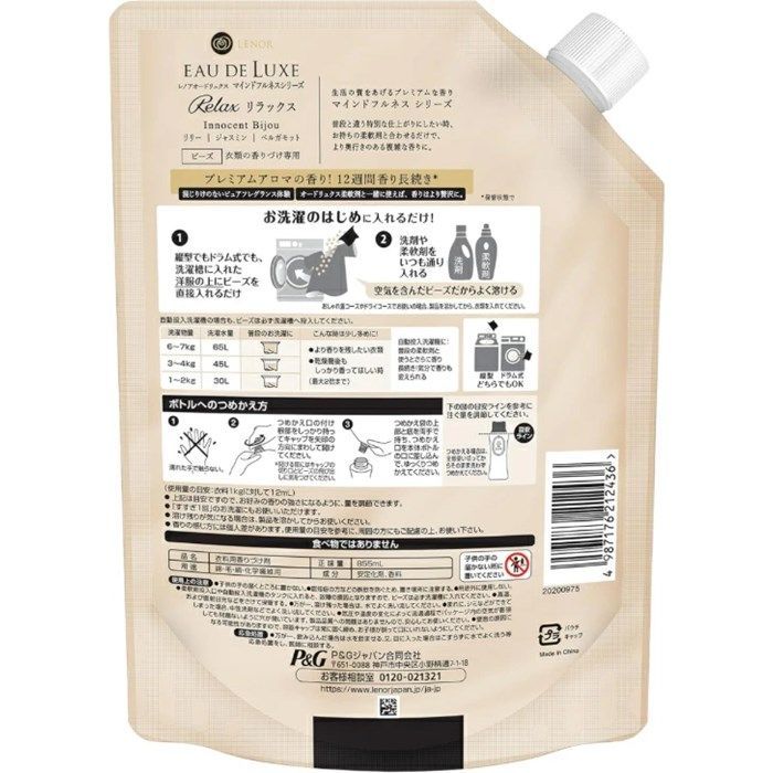 レノア オードリュクス ビーズ 詰め替え マインドフルネスシリーズ リラックス 香り 長続き 贅沢 洋服 タオル 衣類 洗濯 洗剤 柔軟剤 一緒に 特大 大容量 リリー ジャスミン ベルガモット 1 6倍 855 ml