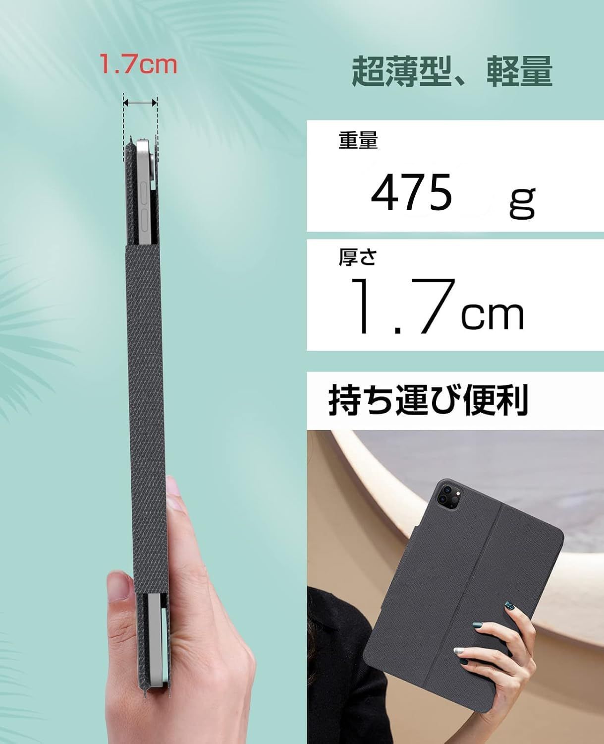 ★★【一体型&磁気吸着式&超薄型&軽量】 ご注意:iPad本体とiPadペンが付属しないのです。この10.9/11インチiPad用キーボード付きケースは、キーボードとカバーが一体型で、ほかの脱着式キーボードケースよりもっと薄くて軽量、厚さは1.7cm、重量は475g、持ち運びに便利。また、カバーに強力なマグネットを内蔵し、ケースとiPadをしっかり吸着させます。カバー材質が丈夫で手触りも良いです。スタンド機能搭載で、iPadを立てかけることができますので、映画鑑賞にはもちろん、仕事用や勉強用にもおすすめ!