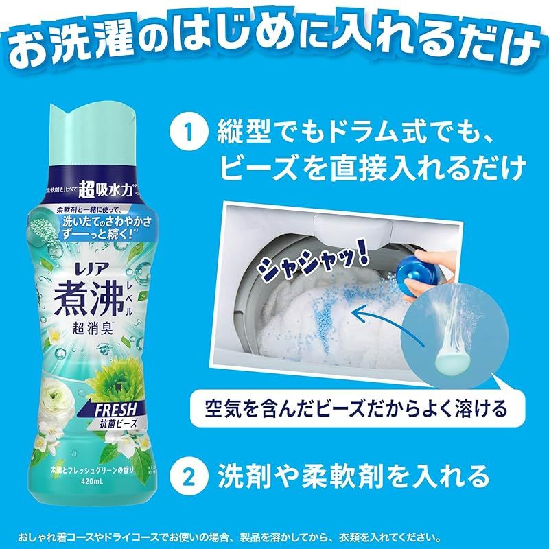 Lenor レノア 煮沸レベル超消臭 抗菌ビーズ FRESH 太陽とフレッシュグリーンの香り 詰め替え 1410 mL 5袋 ケース品 柔軟剤と一緒に使って効果長続き