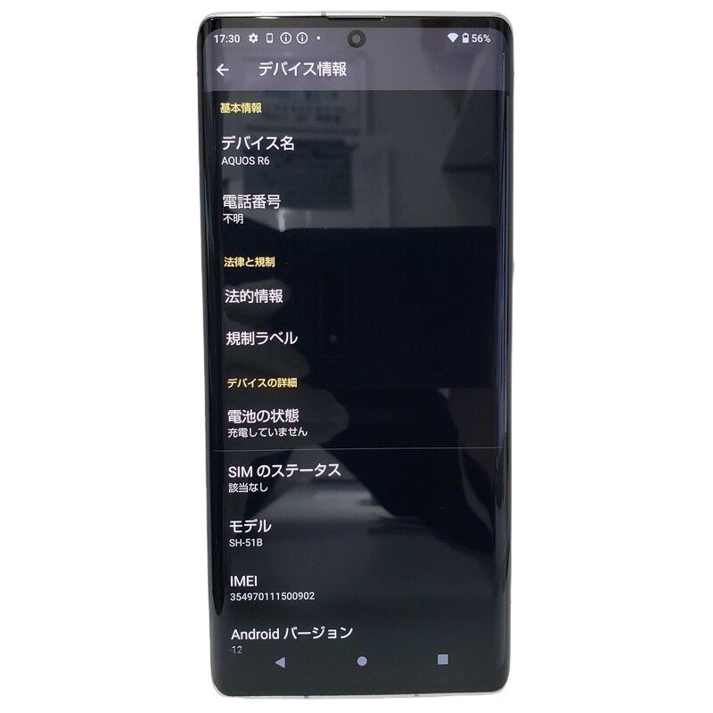 SIMロック解除済 SHARP AQUOS R 6 128 GB SH-51 B docomo 判定 ホワイト アンドロイドスマートフォン スマホ