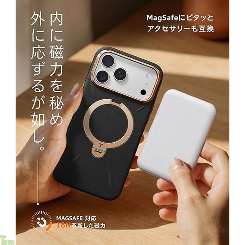 TORRAS iPhone 17 Pro 用 ケース 新感覚レザー スキンタッチ Ostand Q 3 レザートーン MagSafe対応 リング スタンド 360°定点回転 縦横両対応 マグネット搭載 革 カメラコントロールボタン 米軍規格 耐衝撃 指