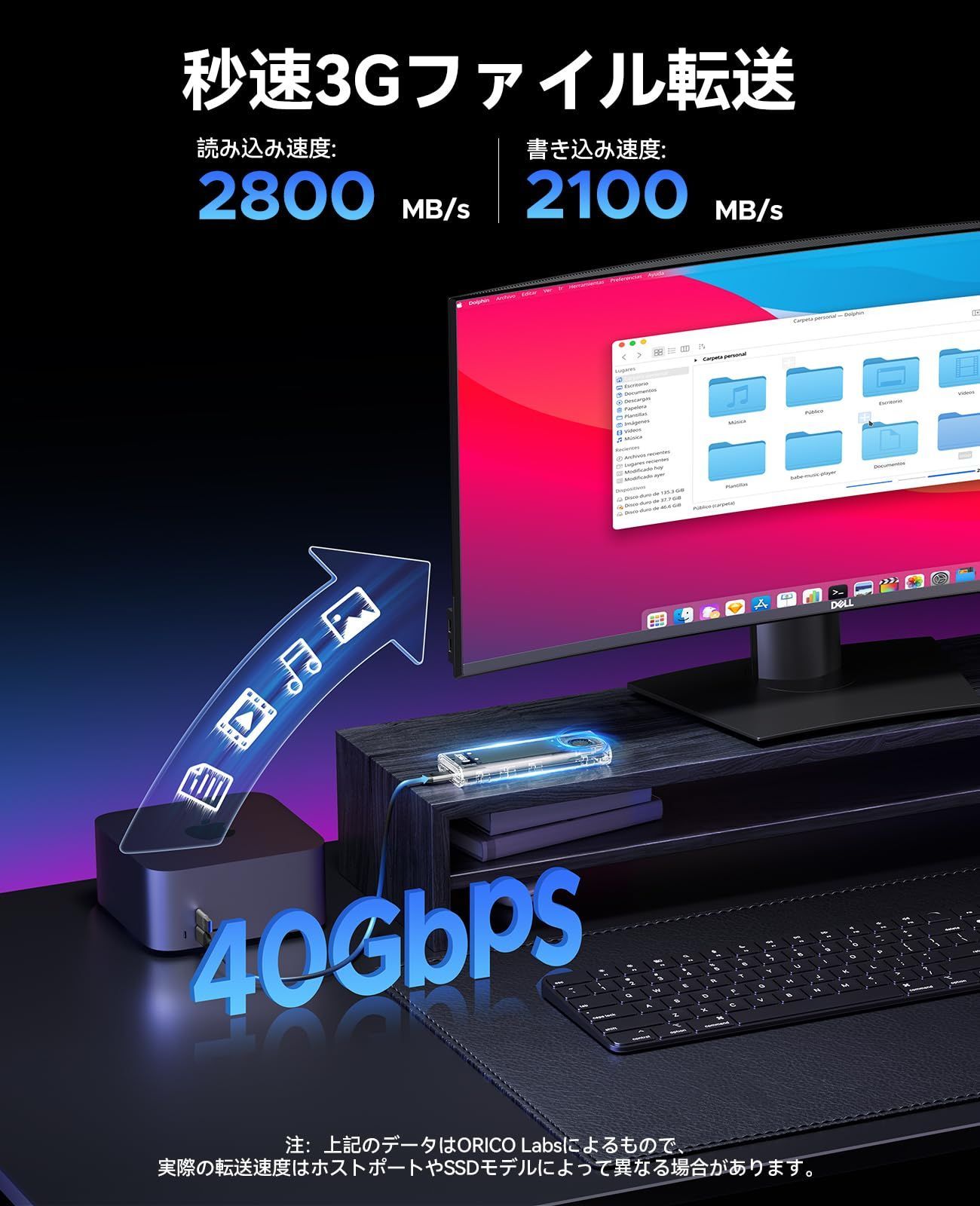 ORICO M.2 SSD 外付けケース 40Gbps 工具不要最新 USB4 NVMe専用M.2 SSDケース ファン内蔵の透明Thunderbolt 4 SSD ケース2230 2242 2260 2280(Mキーのみ)対応、USB4/3.2/3.0/2.0対応-TCM2U4 ブラック