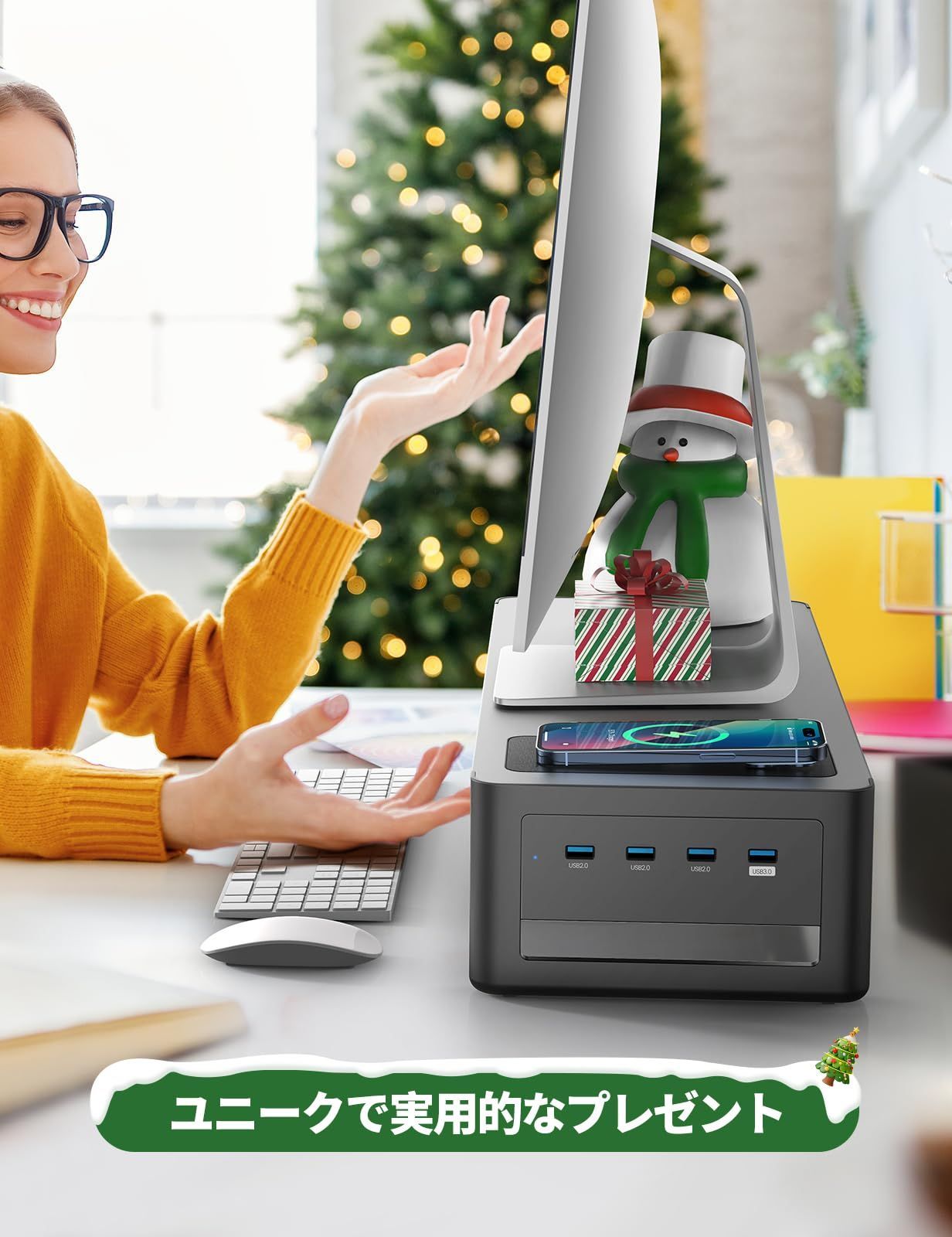 【充電】モニタースタンドは充電器と組み合わせて使用します。充電パネルにiPhoneなどのスマートフォンを置くだけで、数秒で自動的に充電が始まります。iPhoneが充電パッドに正しく配置されていても充電できない場合は、電話を再起動してください。 数秒間充電した後、エアポッドのインジケーターライトが消える場合、それは正常です、充電はまだ機能しています。