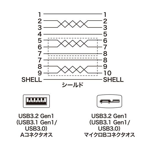 ■コネクタ形状:USB3.0 Aコネクタオス-USB3.0 マイクロBコネクタオス
