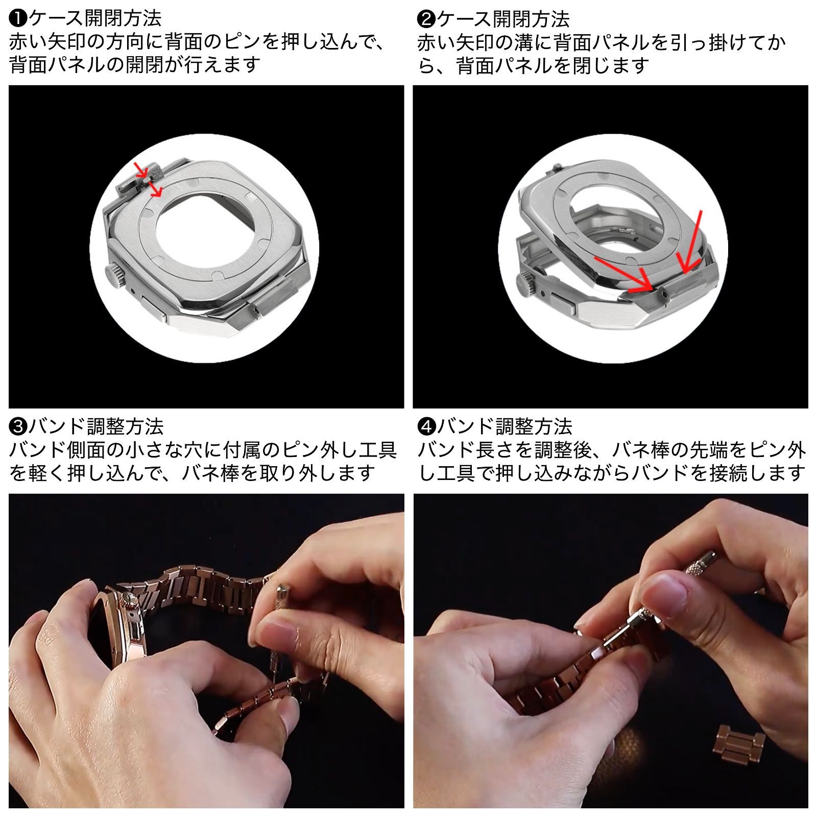 バンド アップルウォッチ カバー ベルト ケース 一体型 ステンレス セット メンズ 高級 おしゃれ フル