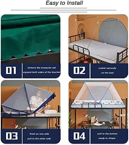 ワンタッチ ベッドテント 軽量 折りたたみ 学生寮 シングルベッドプライバシーテント 夏 蚊帳 蚊対策 全方位 遮光 通気性よい 組み立て簡単 グリーン 90 190 80 cm
