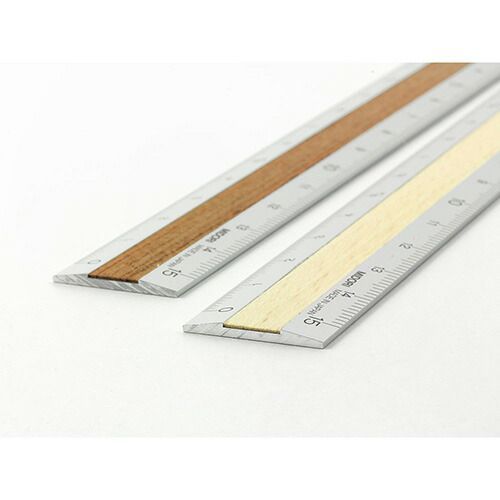 丈夫なアルミと、天然の木を使用した15cm定規。長く使っても消えないレーザー刻印目盛り。【検索ハッシュタグ】#定規#