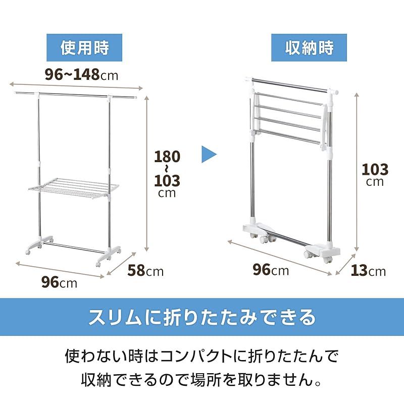 天馬 幅と高さをダブル伸縮できる室内物干し 使わない時は折りたたんでコンパクトに収納 洗濯物干し 組立式 室内用 伸縮式室内物干しH型 ホワイト 幅96 148 奥行58 高さ103 180 cm サイズ PS 02