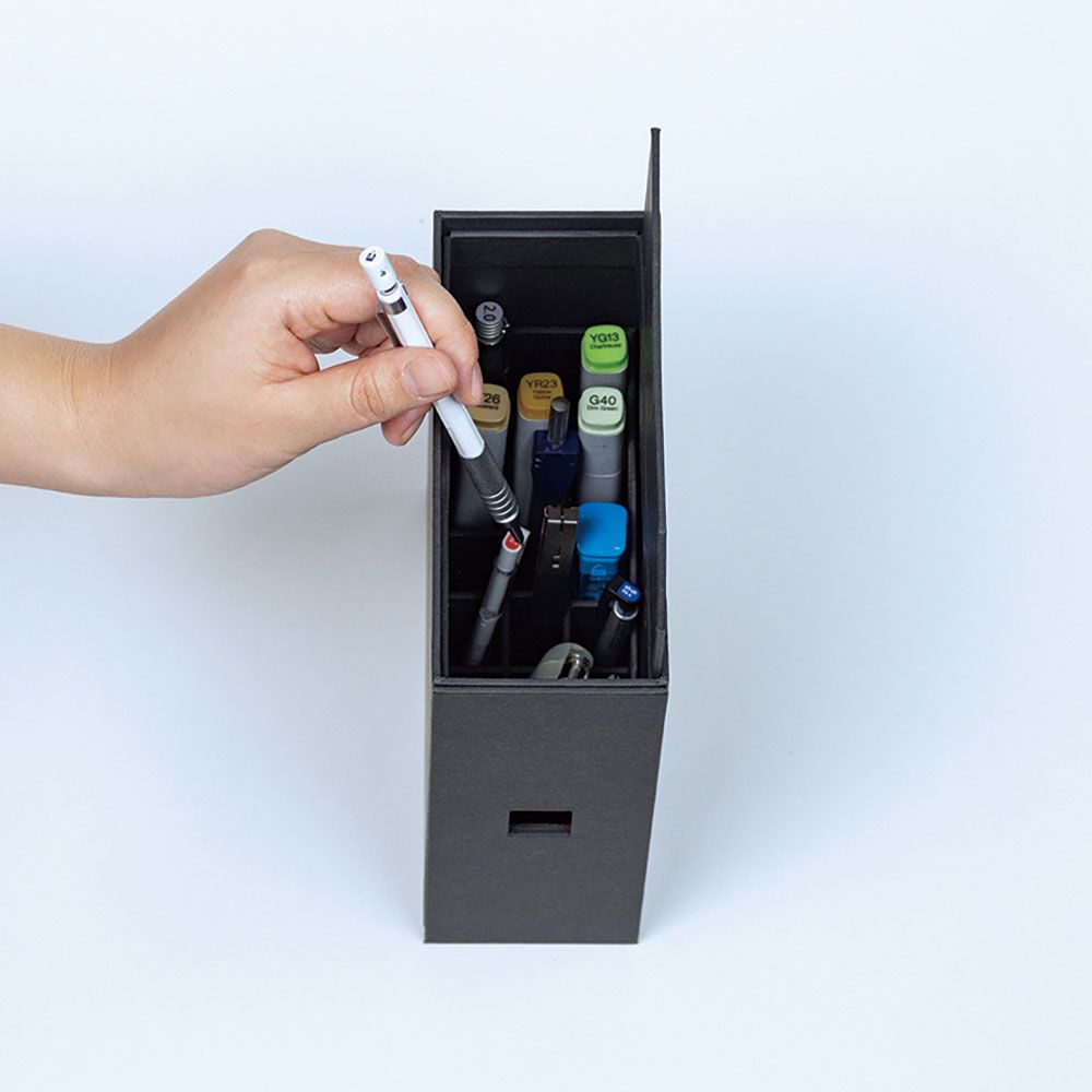 中仕切りがあるからペンやハサミが倒れず収納できて一覧しやすい。